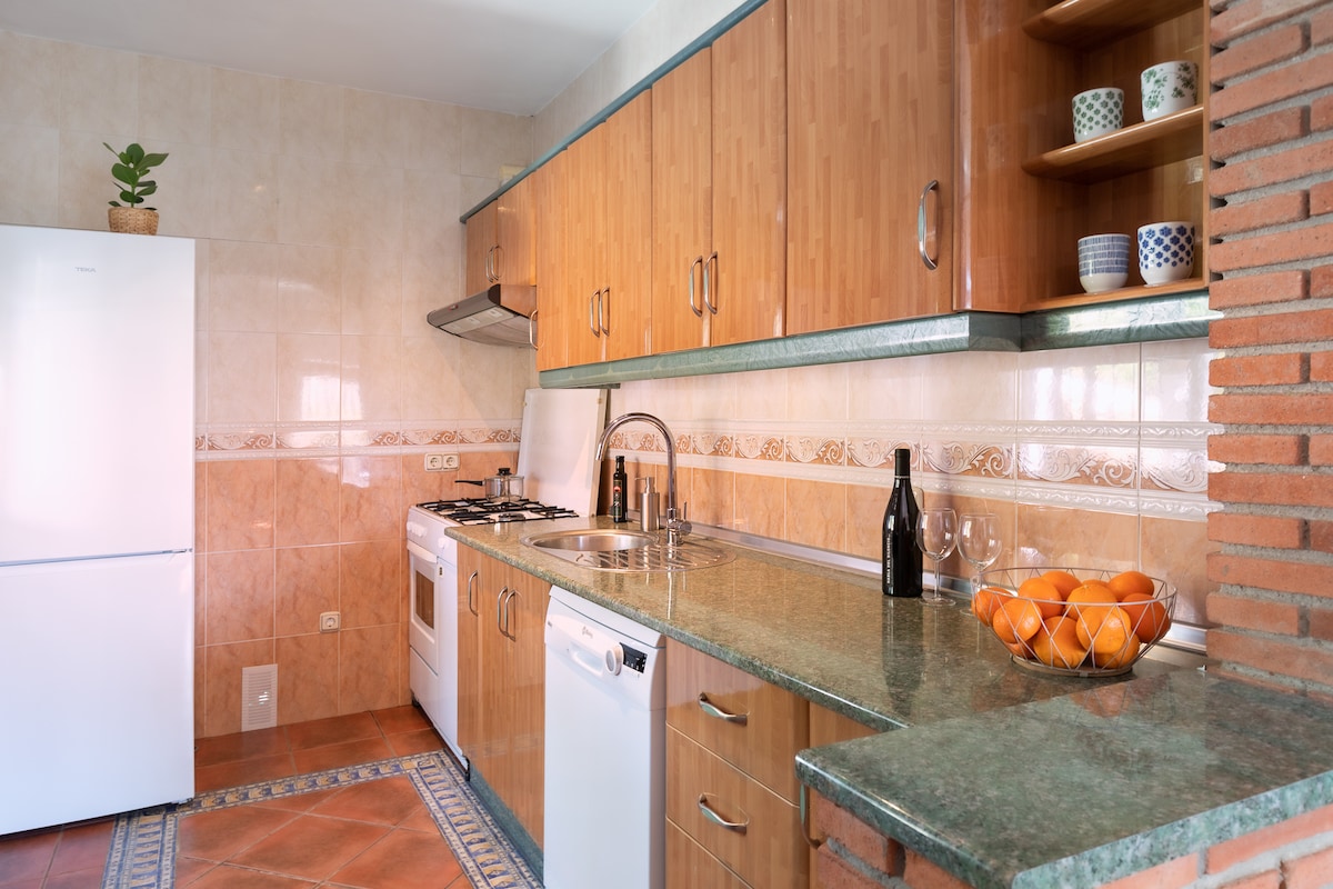 Casueña está en pleno campo, a las afueras de la ciudad de MÁLAGA, rodeado de arboles y pájaros. El Aeropuerto, el centro de Málaga y las playas están solamente a 20 kilómetros de distancia. CASUEÑA es una Bonita villa con piscina privada con cloración salina y climatizada todo el año, barbacoa de leña, grandes arboles, una cocina de seis fuegos y horno de 90 cm. Tiene un fantástico porche de 50 m2 que centrará la actividad de la casa, junto a él está la barbacoa y la piscina climatizada.