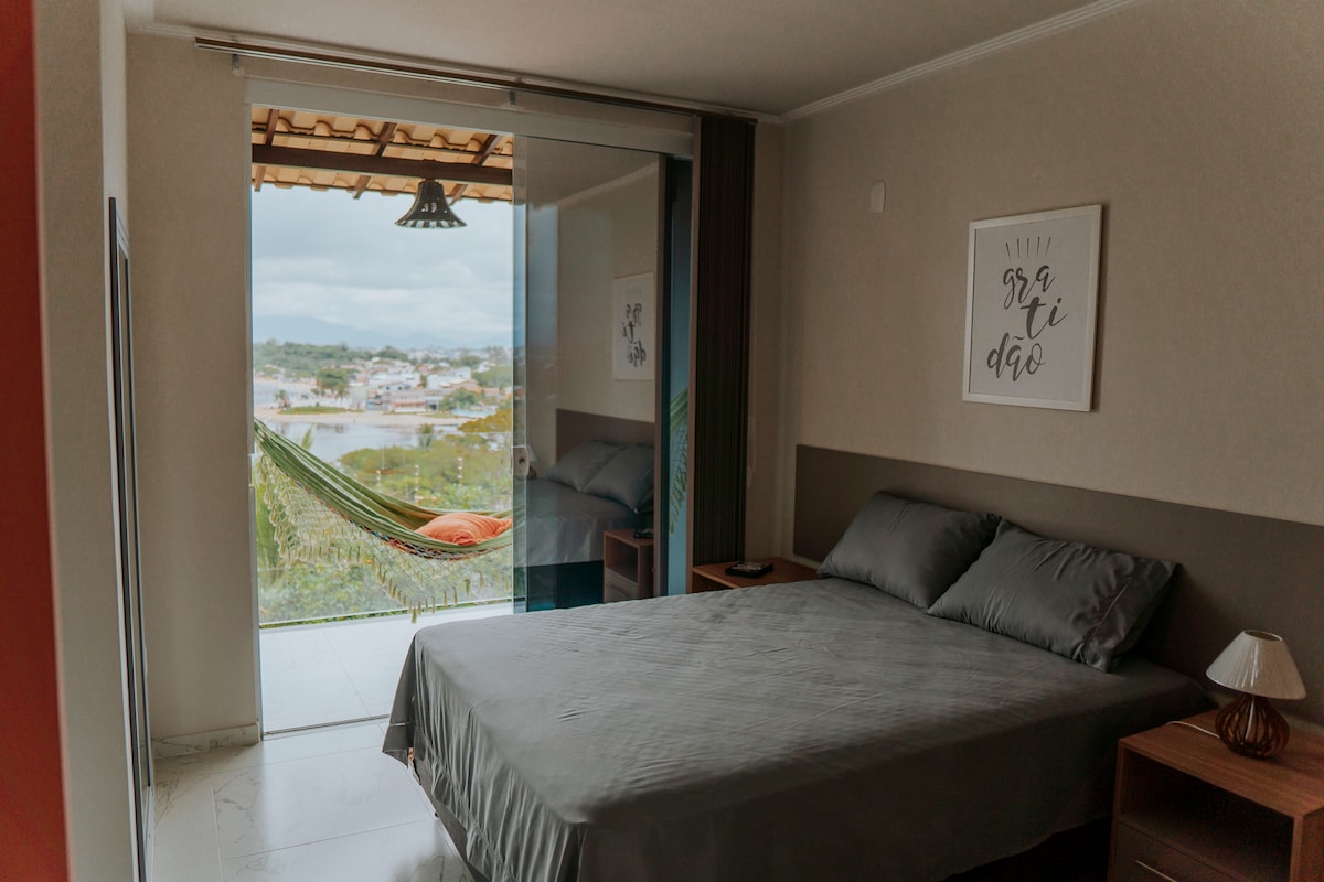 Casa mejor calificada en la región con: terraza con vista panorámica al mar zona gourmet con barbacoa wifi en todo el entorno 2 plazas de estacionamiento 2 suites con TV inteligente y cocina equipada Ideal para un máximo de 07 huéspedes Ropa de cama y toallas se proporcionan baños Artículos de playa disponibles: sillas de playa, sombrilla y carrito Tabla para niños, juguetes y pelota de peluche además de un congelador de bolsas Distancias: 600m Craft Feirinha 700 metros de Rodoviária 1,2 km Concha Acústica y compras navideñas