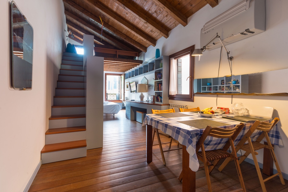 Acurrúcate con un libro, desayuna y cena mientras admiras la increíble vista de los campanarios y canales de Venecia, vive como un verdadero veneciano en el barrio más típico de Venecia a pocos pasos del puente de Rialto, Ca' D'oro y San Marco en un apartamento acabado con muebles y adornos hechos por artesanos venecianos y de Murano. Te sentirás como si estuvieras experimentando el fantástico ambiente de los años 1800, pero con todas las comodidades de un apartamento moderno. No te pierdas esta increíble experiencia.