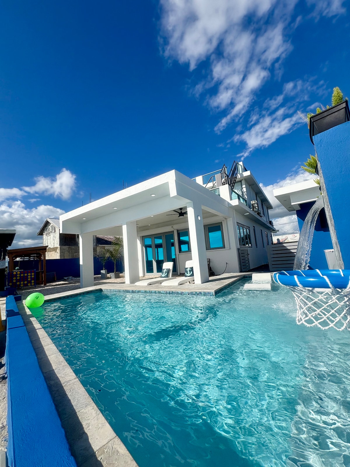 Bring the whole family to this great place with lots of room for fun. Home is equipped with a pool, jacuzzi tub, outdoor kitchen, outdoor bar, Poolside bar and putting green. Home is equipped with a generator and a emergency 250 gallon water tank. Walking distance to Polita's beach, which has jetski rentals and boat tours. Walking distance to local beach front restaurants. 2 minutes drive to mall with Econo supermarket, Walgreens pharmacy, department stores and many fast food restaurants.
