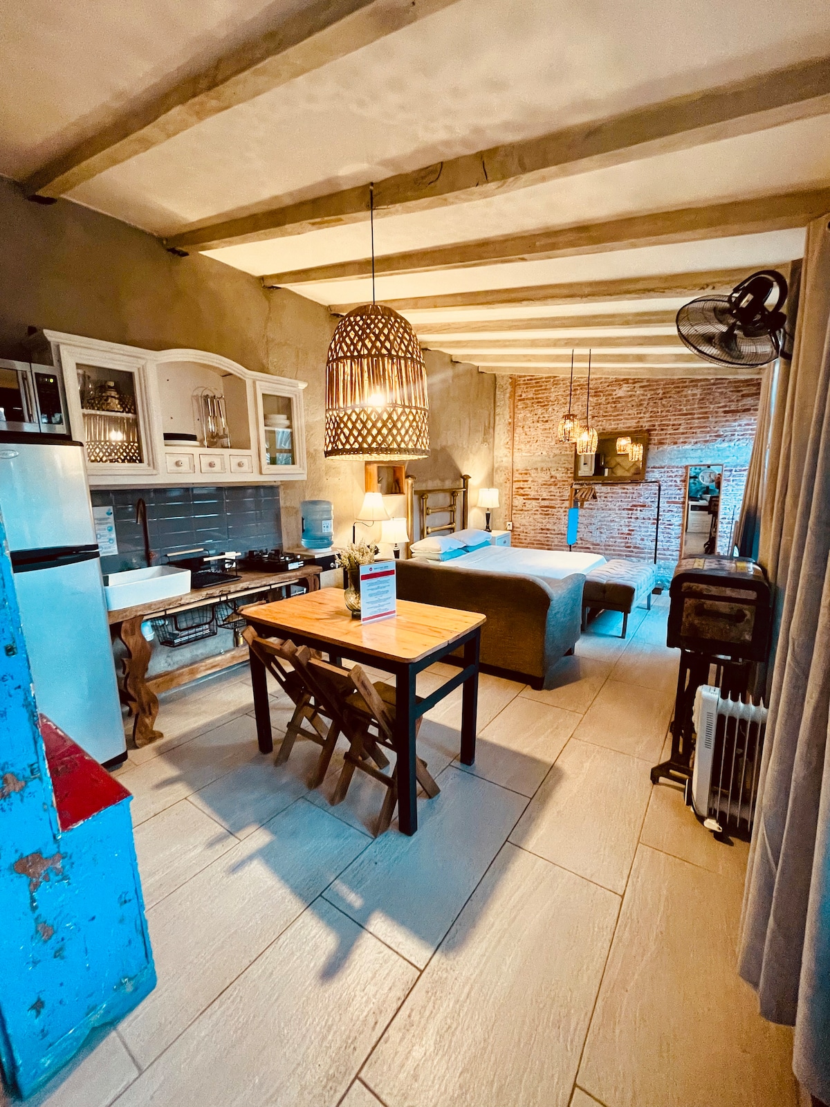 Este es un departamento moderno, privado con una ubicación perfecta—a 15 minutos del centro caminando y 5 en taxi. Es un loft abierto y luminoso en el tercer piso equipado con sala, cocina, recamara y baño completo. Comparte su acceso con un café en la planta baja, pero la entrada es completamente independiente. Este lugar es perfecto para huéspedes independientes y también para los que gustan de un toque de hospitalidad.