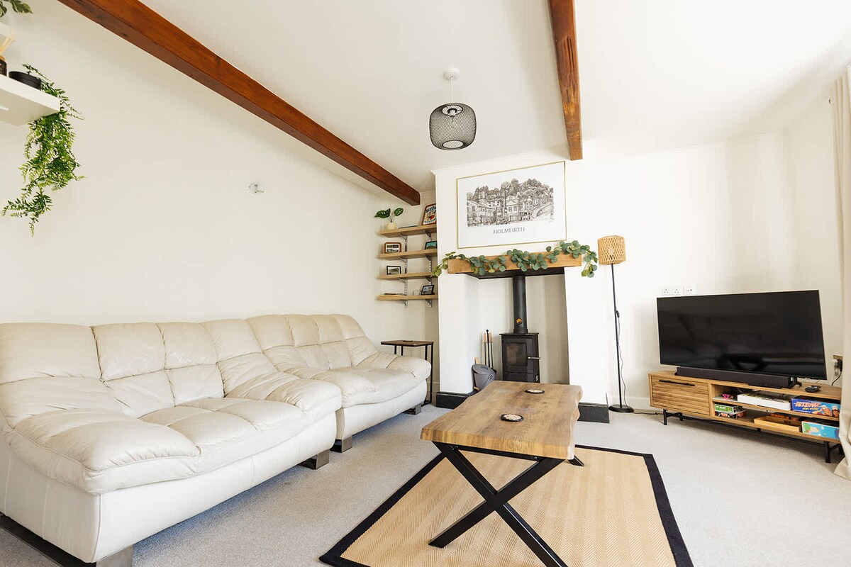 Histórica, mágica y romántica casa de campo del siglo XVII llena de carácter, con vigas a la vista, paredes de piedra y un encanto de cuento de hadas, con una crepitante estufa de leña (buen suministro de leña) 🍷Tranquilo y escondido, pero a solo 10 minutos a pie de los cafés, pubs y tiendas de Holmfirth 🥾Impresionantes paseos, rutas en bicicleta y vistas al valle desde la puerta 👨👩👧2 cómodas habitaciones, perfectas para parejas, amigos o familias pequeñas 🍳Cocina bien equipada, cómodo espacio de estar y camas, 2 televisores inteligentes, wifi rápido 🚗Estacionamiento fácil en la calle