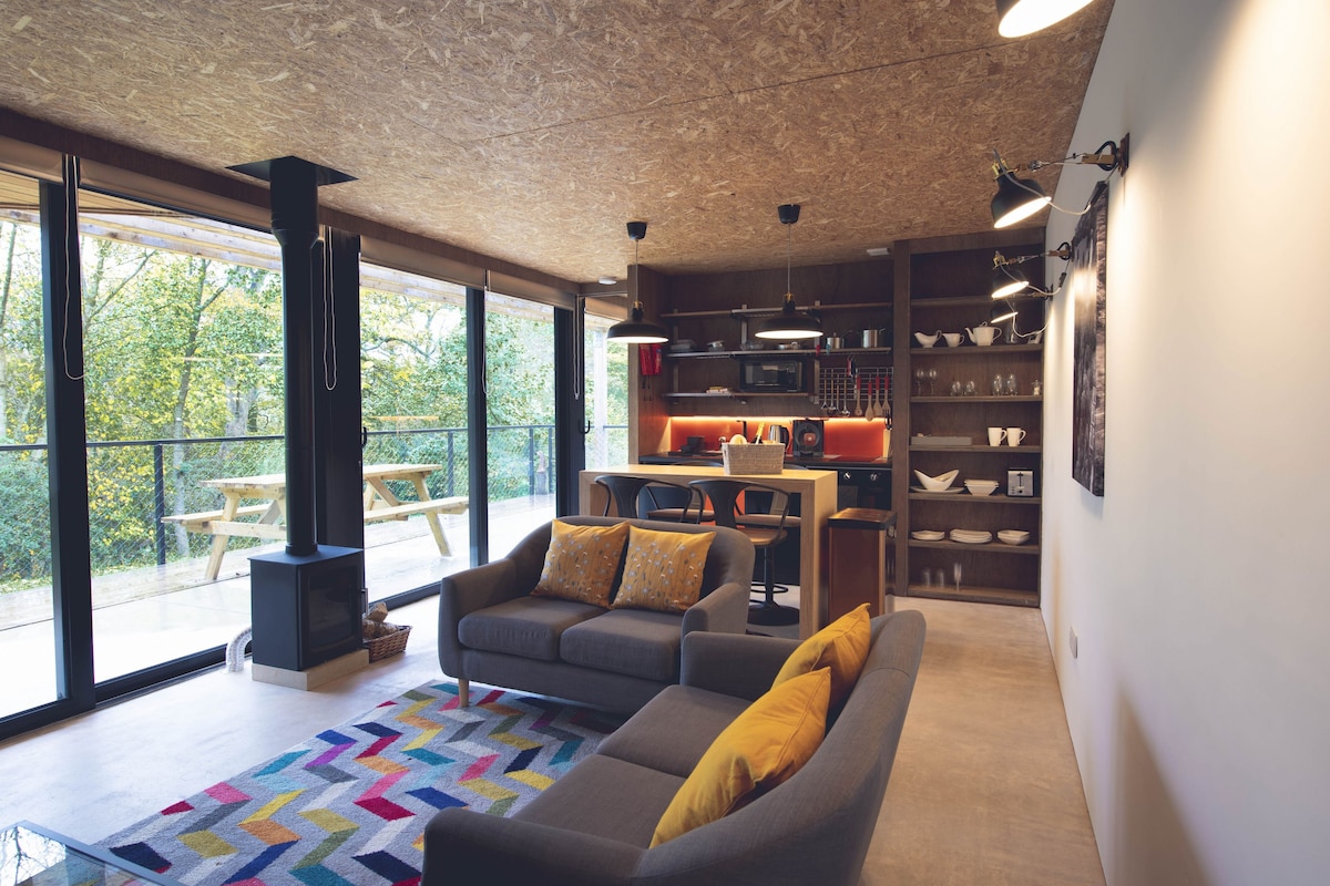 Capaz de dormir cuatro, idealmente dos más dos, cada cabaña se encuentra en una pendiente, frente al río. Con escalones hasta dos de ellos y un camino de grava inclinado hacia el otro, cada uno tiene dos dormitorios dobles/con dos camas individuales, dos habitaciones con ducha/WC (una en suite en el dormitorio más pequeño), cocinas totalmente equipadas con lavavajillas, WiFi, TV de pantalla grande e impresionantes puertas de vidrio que te proporcionan vistas estacionales siempre cambiantes al sur al otro lado del río Tees. Y justo afuera, está el camino junto al río para eso a primera hora.