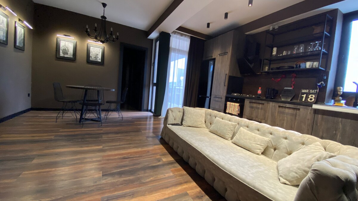 ¡Hola! Bienvenido a mi casa, una elegante mezcla de lo antiguo y lo moderno :) Aquí tendrás un dormitorio principal con una cama tamaño king, su baño privado con bañera, un armario, un escritorio y una terraza. El apartamento también cuenta con un segundo baño con una gran ducha, una amplia sala de estar con una cocina de espacio abierto y una gran segunda terraza para beber vino, cenar, hacer barbacoas y disfrutar de la vida. Estamos en la mejor zona céntrica de Tiflis, llena de bares y todo tipo de servicios. Nina