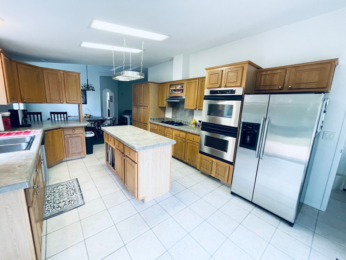 Welcome to a brand-new home, constructed in 2022, nestled at the end of a tranquil cul-de-sac. This spacious four-bedroom residence offers a total of 10 beds, accommodating your group comfortably. An open layout connects the kitchen, dining area, and living room, enhancing the sense of space. The well-equipped kitchen boasts all the essentials you'll need. The living room is furnished with a 65" Roku TV, complemented by an electric fireplace in the TV stand.