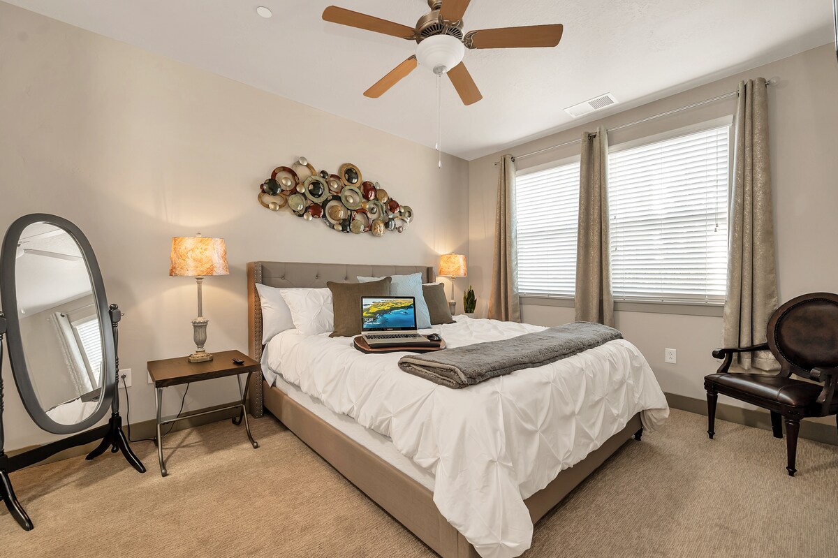 This ground floor studio apartment comes with access to a large Gym, Pool, Hot Tub, Clubhouse w/ a Pool Table and Shuffle Board, BBQ Grills, Firepits, and Pickle Ball Courts. Inside the unit there is a Designated Workspace with High Speed WiFi making this a great option for remote workers. There's a full Kitchen that comes fully stocked w/ cookware, utensils, coffee, and kitchen essentials. Great location within Draper offering quick access to I-15 and many main key attractions in the area.