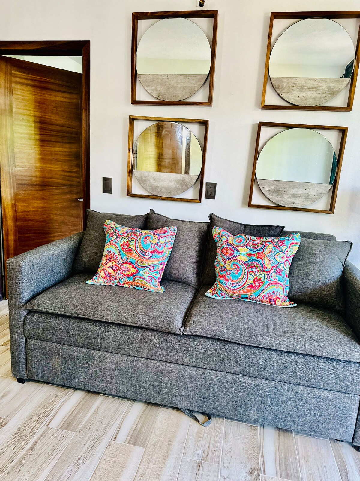 A pocos pasos de la playa, Casita Rubia es nuestra unidad inferior a nivel de jardín, que ofrece una escapada refrescante y tranquila en San Pancho. Recientemente renovada con toques cálidos y modernos, esta luminosa casita de un dormitorio se encuentra debajo de dos nuevas suites superiores y tiene vistas a un exuberante jardín y una piscina compartida. Disfruta de las tumbonas de la piscina o de tu bistró privado fuera del dormitorio principal. Te esperan una cocina completa, una mesa de comedor y wifi Starlink de alta velocidad, ¡y las mascotas son bienvenidas!