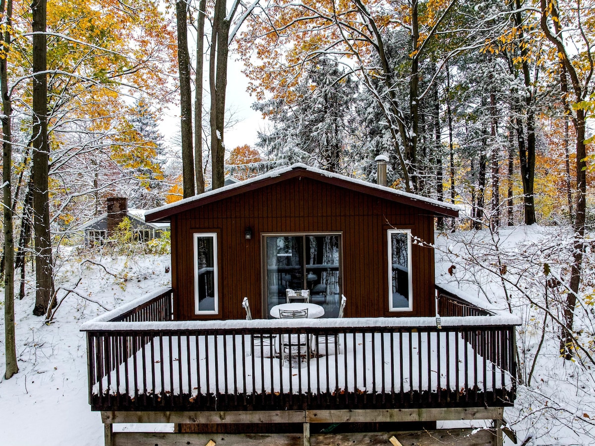 Tranquilo y silencioso. ¡El lugar perfecto para escapar a la naturaleza y la serenidad mientras te relajas frente a la estufa de leña en nuestra acogedora cabaña! A menos de 3 minutos del parque estatal Saugatuck Dunes, que conduce al lago Míchigan (a 5 minutos en bicicleta). A 5 minutos del centro de Saugatuck y de todo tipo de tiendas locales, restaurantes y entretenimiento. A 10-15 minutos de Holanda para disfrutar de festivales anuales como Tulip Time o el fin de semana de las novias en el centro de la ciudad! ¡Ven a ponerte cómodo y a desconectar del bullicio!