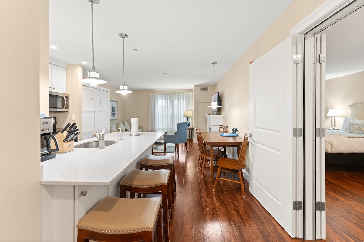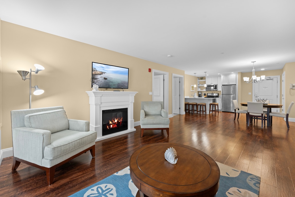 Relájate y rejuvenece en el acogedor pueblo costero de Ogunquit. ¡No hay gastos de limpieza en este alojamiento ! Tu unidad privada de un dormitorio está equipada con dormitorio separado con un spa de hidromasaje, una sala de estar con chimenea , sofá cama, una cocina, televisión por cable y capacidades de Internet de alta velocidad. Un servicio de traslado te lleva a las playas, Perkins Cove y el centro de Ogunquit. Piscina cubierta y sauna con área de sol exterior. Camina hasta la playa de la pasarela. Cerca de restaurantes y atracciones. Estacionamiento gratuito en el lugar.