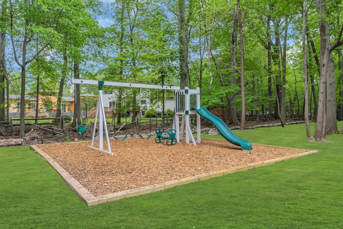 Refugio de primavera con jacuzzi, lugar para hacer fogatas y sala de juegos