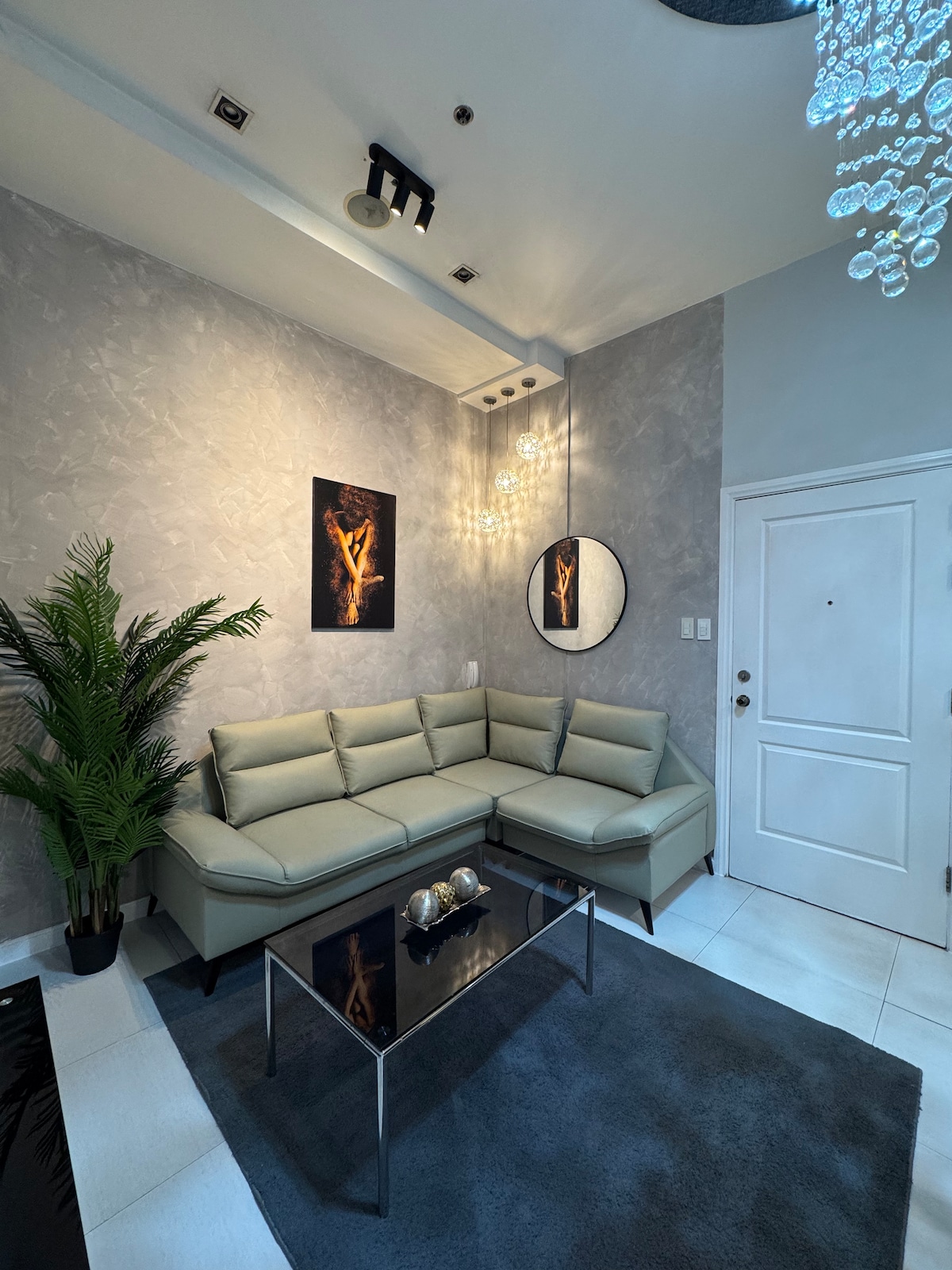 Un acogedor loft en The Gramercy Residences, justo en el corazón de Makati. El espacio tiene una cama tamaño queen con capacidad para 2-3 personas y un colchón doble adicional a petición (para grupos de 4). Ideal para trabajar o descansar, con Wi-Fi rápido de 100 mbps, un escritorio de pie y un cómodo sofá con Netflix y Cignal TV. Cocina completa con utensilios de cocina, vajilla y electrodomésticos. Acceso gratuito al área de la piscina y al gimnasio. Las piscinas incluyen una piscina para niños, una piscina para adultos y una piscina de entrenamiento. Lugar tranquilo en la ciudad con todo cerca.