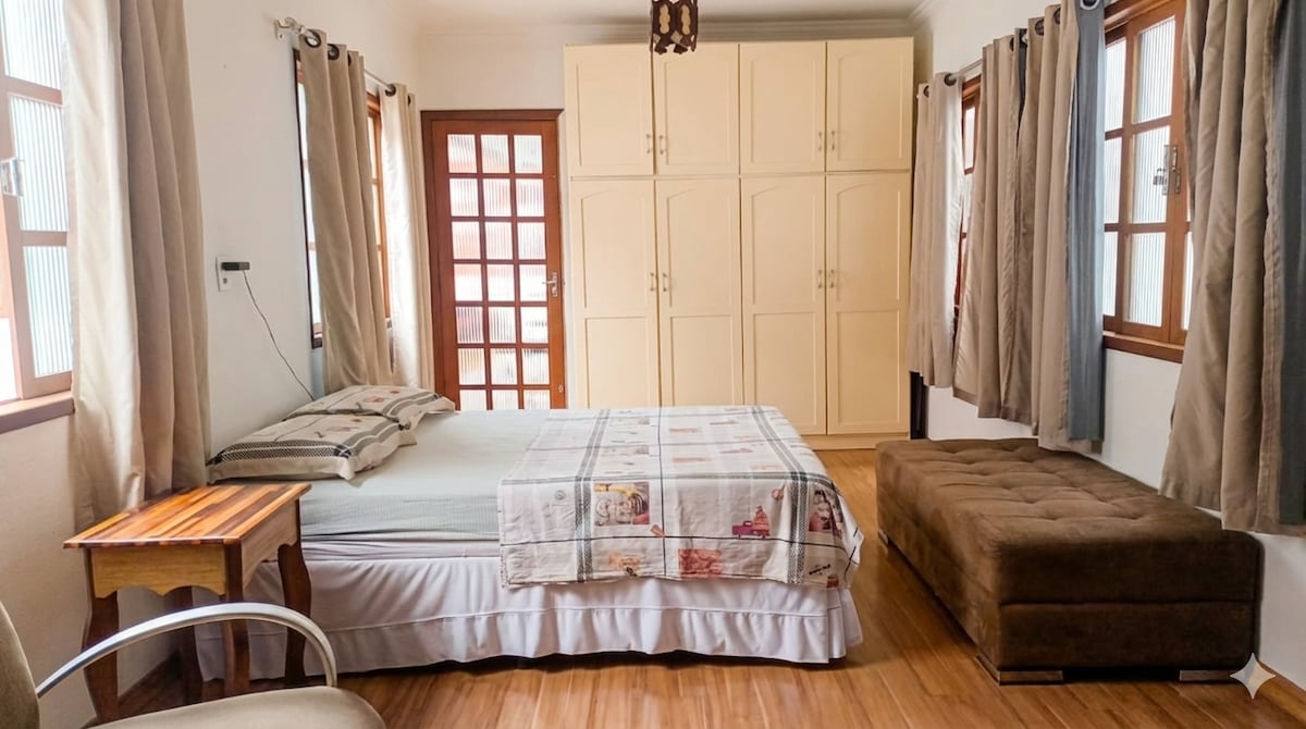 Nuestro chalet fue construido al borde del bosque nativo, con el fin de proporcionar una inmersión en la naturaleza para que nuestros huéspedes disfruten de la paz y la tranquilidad, conviviendo con los animales que viven allí. En su área interna, el chalet cuenta con todas las comodidades y comodidades de una casa moderna sin perder su esencia. Nuestro espacio está situado en una excelente ubicación: 6 km del parque Beto Carrero World. A 4,7 km del aeropuerto de Navegantes. 2 km de la playa de Gravatá.