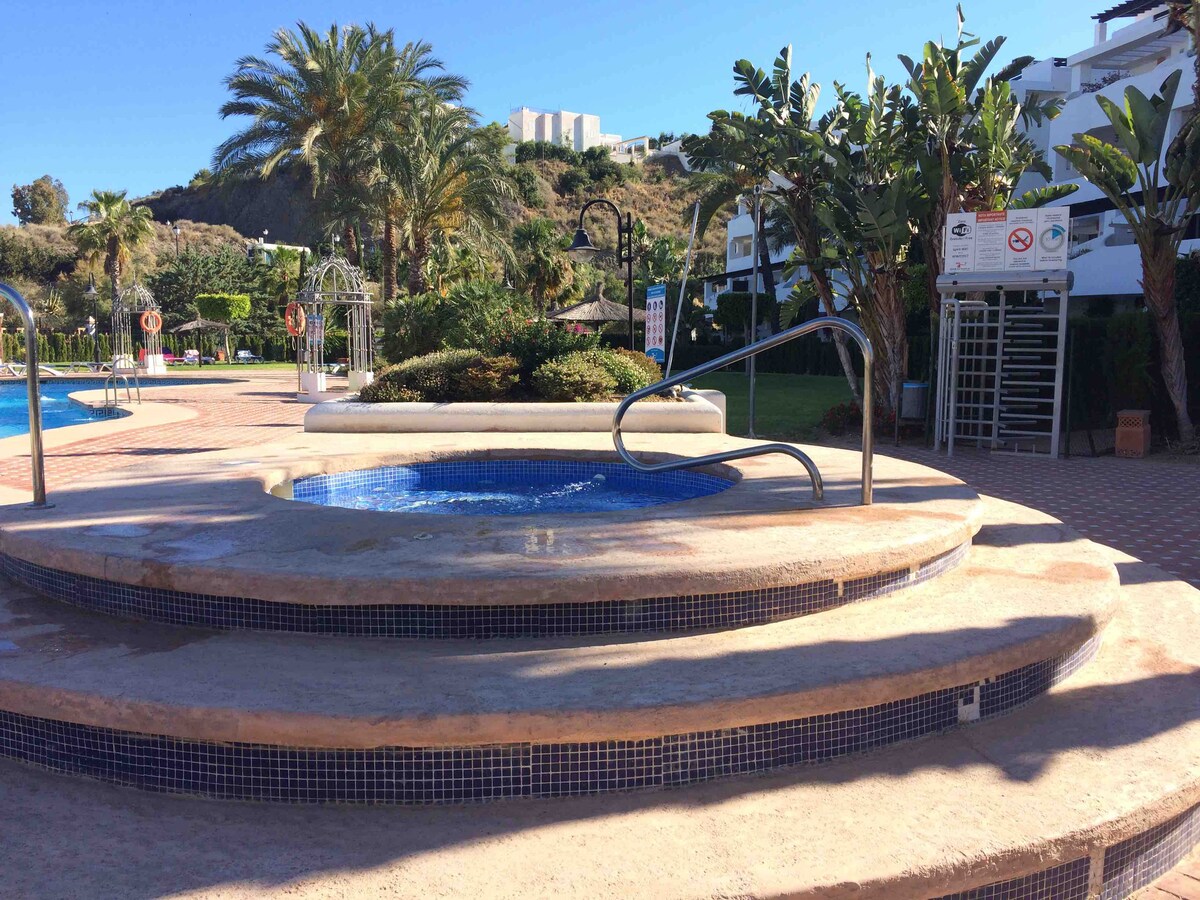 Magnífico apartamento para disfrutar de unos días de descanso y relax junto al Cabo de Gata y sus playas. Al lado del campo de golf y a un paseo de la playa. Toma el sol en alguna de las dos terrazas/jardin de la casa . Cuenta con dos habitaciones, la principal con baño , cocina totalmente equipada, y un salón con acceso directo al jardín .Accede directamente a la piscina comunitaria desde la terraza/jardin principal . Plaza de garaje propia. Wifi 600mb de fibra , NETFLIX , climatización.