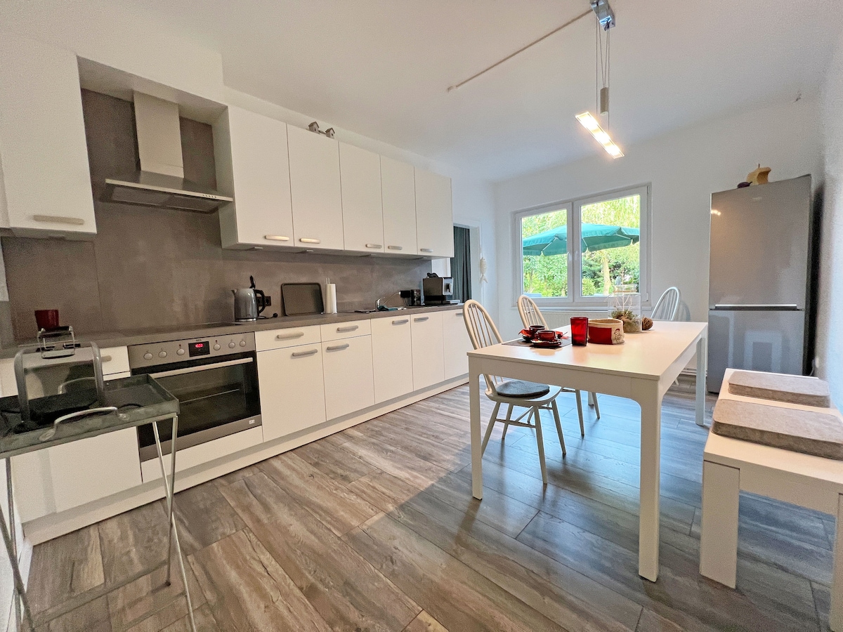 Situado en una zona tranquila en el pueblo más largo de Baja Sajonia con una hermosa terraza soleada y vistas a la naturaleza. El apartamento, decorado con buen gusto, a ras de suelo (pero no apto para discapacitados) y recién reformado, es un lugar agradable para relajarse y ser feliz. En los alrededores se pueden explorar lugares interesantes. Hay piscinas naturales y lugares tranquilos como el Steinhuder Meer. Para variar, hay lugares de interés como el parque de aves de Walsrode, el parque Heide de Soltau o el parque Serengeti.