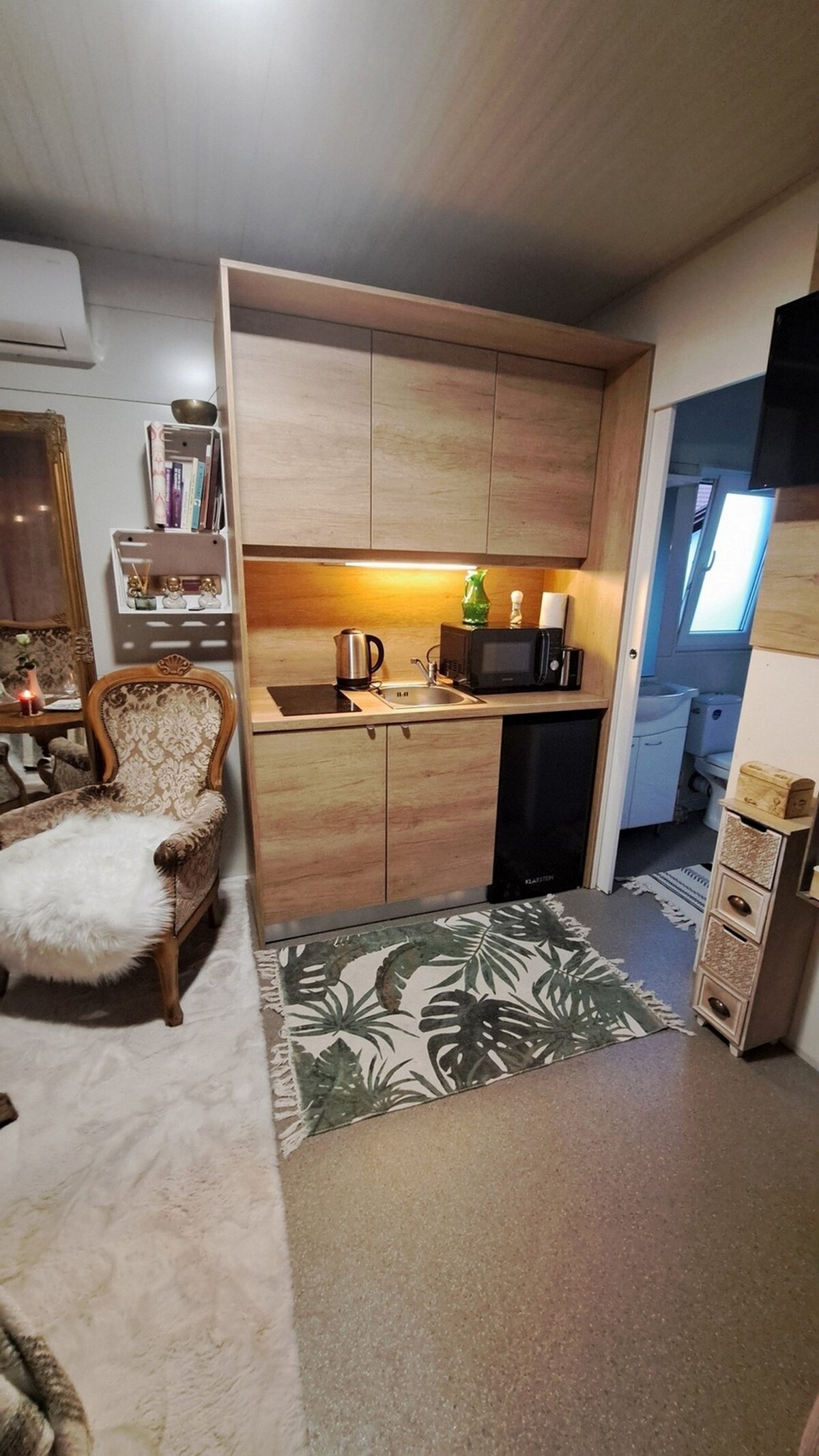 Rodeada de naturaleza, esta moderna casa móvil ofrece un área de bienestar interior privada con sauna y jacuzzi. Comienza el día en la terraza con el sonido de los pájaros y luego retírate al interior para relajarte por completo. Ya sea que te sumerjas en agua tibia o disfrutes de momentos tranquilos, cada detalle está diseñado para ayudarte a relajarte. Estaciona tu auto, deja tus preocupaciones en la puerta y deja que la calma se apodere de ti.