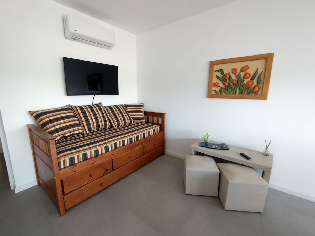 Disfruta de la calidez de este alojamiento tranquilo y céntrico. Departamento a estrenar, luminoso. Excelente ubicación. Cercanía de bares, cine, estación de servicio y peatonal.