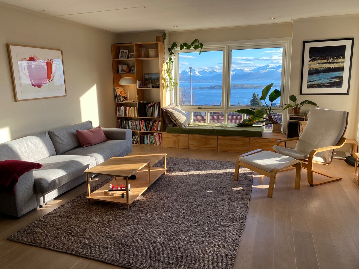 Unn deg en fin plass å bo, len deg tilbake og slapp av: enten det er ferietur eller jobbreise. Leiligheten er lys, trivelig og moderne – med alt på ett plan, to soverom, og til sammen opp til 4 sengeplasser. Du har nydelig utsikt over fjell og fjord med flotte turstier i nærområdet som strekker seg i alle retninger. En liten kilometer unna har du sentrum i Ulsteinvik som er sentralt knytt til mange kjente attraksjoner som Sunnmørsalpene, Runde, Flø, Ålesund, Geiranger og mange flere!