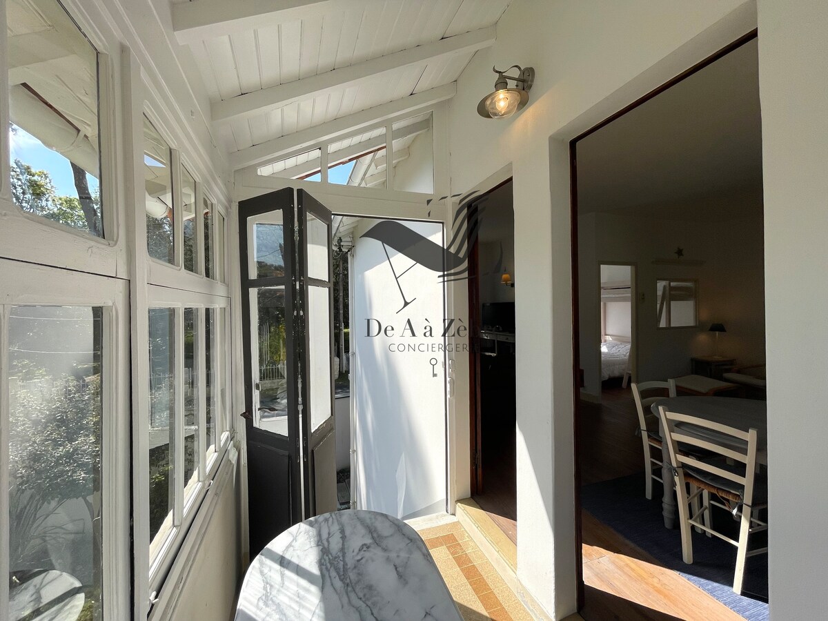 Dúplex de 30 m², adyacente a la casa del propietario con acceso independiente. Planta baja: cocina americana (nevera, microondas, minihorno, placa eléctrica, cafetera) zona de comedor y sofá, aseo. Planta superior: 1 dormitorio con cama doble (posibilidad de cuna, acceso seguro para niños), cuarto de baño con ducha y lavabo doble. Patio con mesa y sillas de jardín. Cobertizo para bicicletas y motocicletas. Mercado y tiendas a 100 m a pie. Acceso a pie al puerto deportivo y al canal de la Cayena, restaurantes, ciudad de las ostras. Paseos en bicicleta