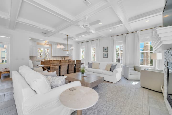Perfectamente ubicado en el corazón de la querida Seacrest Beach, este refugio cuidadosamente diseñado ha sido creado para familias y grupos que buscan un espacio generoso, un estilo refinado y una combinación perfecta de comodidad y lujo costero.