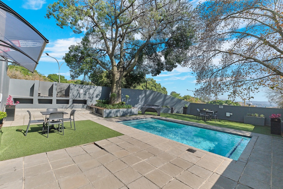 Apartamento privado y con energía de respaldo, elegantemente amueblado en un entorno bien protegido. Los aspectos más destacados son el amplio salón, aire acondicionado, jacuzzi y piscina no compartidos. Es un lugar encantador, privado, relajante y tranquilo para venir por placer o negocios. Este apartamento de lujo está cerca de centros comerciales de clase mundial, como Sandton City, Nelson Mandela Square, Mall of Africa, Monte y oficinas centrales de empresas multinacionales. También está a pocos metros de la Escuela de Negocios Henley y del Hospital Sunninghill.