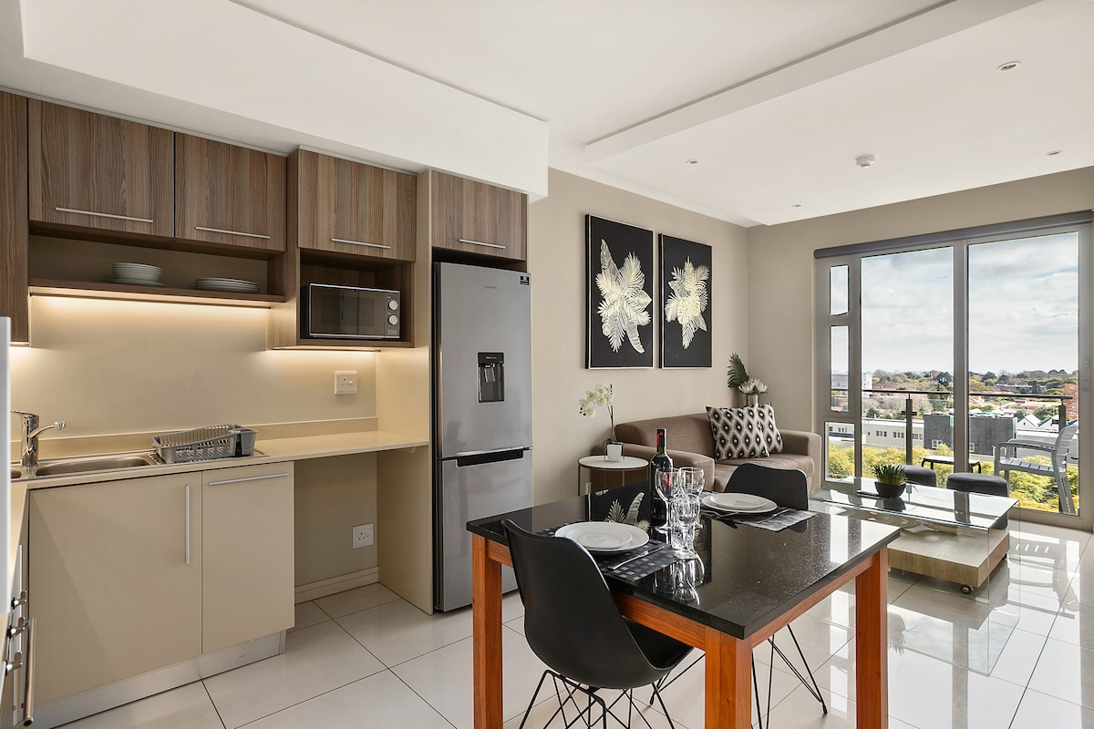 El apartamento está situado en el corazón del bullicioso recinto de Rosebank. La decoración moderna pero acogedora del apartamento con la abundancia de luz natural en la sala de estar crea un entorno rejuvenecedor para tu cuerpo y mente. El apartamento ha sido equipado con electrodomésticos de primera calidad, ollas y sartenes, sal y pimienta, wifi de fibra ilimitado gratuito, té y café de cortesía y mucho más para que tu estancia sea inolvidable. *No se proporciona agua embotellada, aceite para cocinar, adaptadores ni champú.