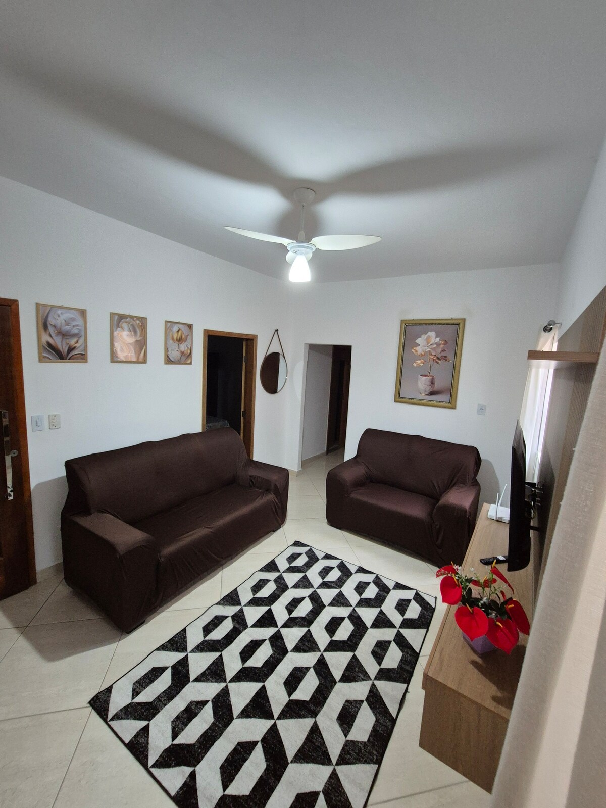 Casa aconchegante localizada na cidade de Aparecida no bairro Itaguaçu a 3 km do Santuário Nacional e a 500 metros da imagem de ferro de Nossa Senhora. O imóvel é bem cuidado, arejado e oferece um ambiente familiar, com espaços pensados para proporcionar uma estadia agradável. Conta com 2 quartos confortáveis equipados com ventiladores, 1 sala acolhedora com tv e acesso à internet, 1 cozinha equipada para refeições do dia a dia e 1 banheiro limpo e funcional, além de uma garagem para 3 carros.