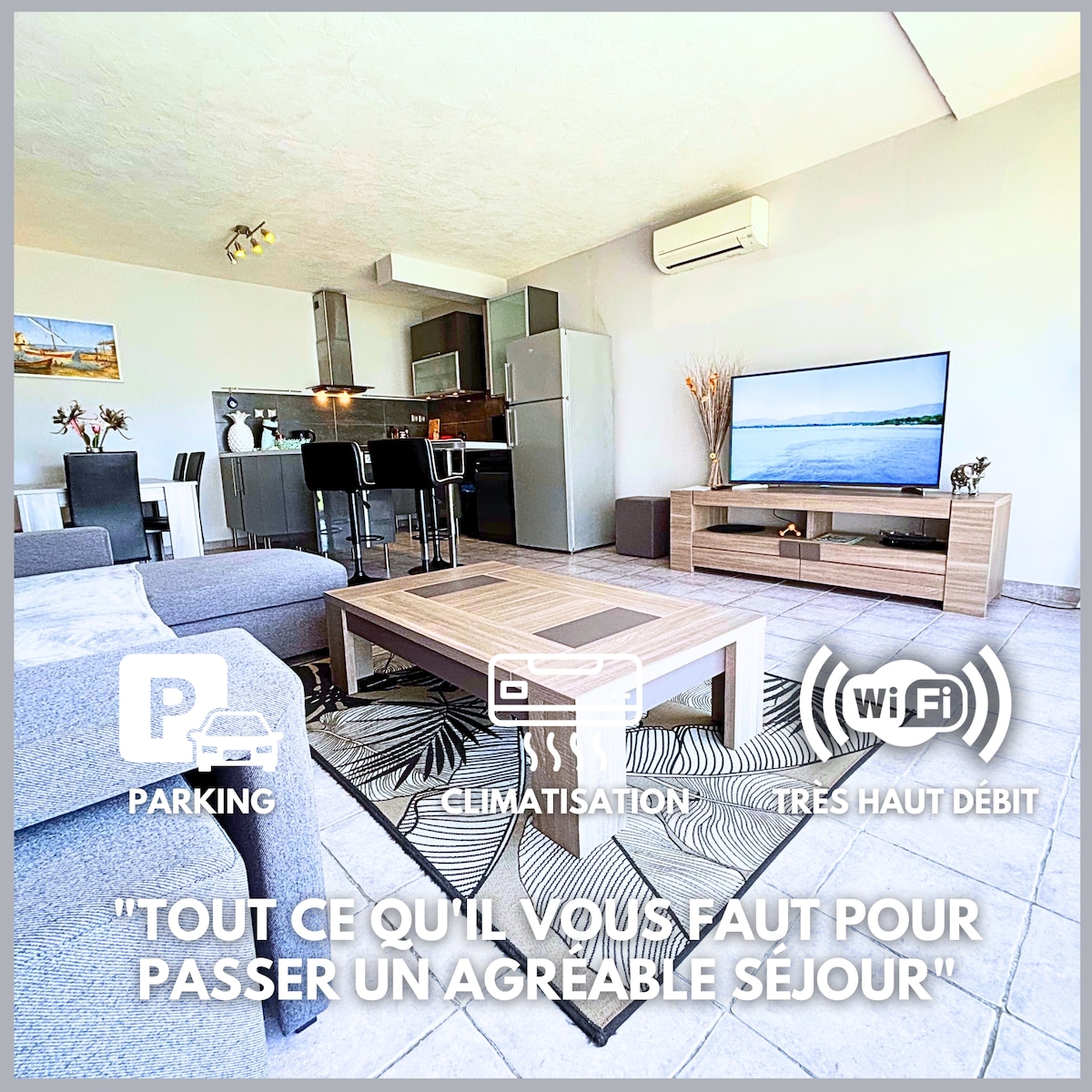 Situado en un edificio tranquilo cerca del puerto y la playa, venga a relajarse en este magnífico apartamento de 2 habitaciones y su hermosa terraza de 27 m2 orientada al sur. El apartamento está totalmente equipado (lavadora, lavavajillas, horno, aire acondicionado, cafetera Nespresso, sofá cama). Cerca de todos los servicios, encontrará una farmacia y una panadería a 50 metros y un Intermarché a menos de 5 minutos en coche. Venga a disfrutar del nuevo acuario para los más pequeños.