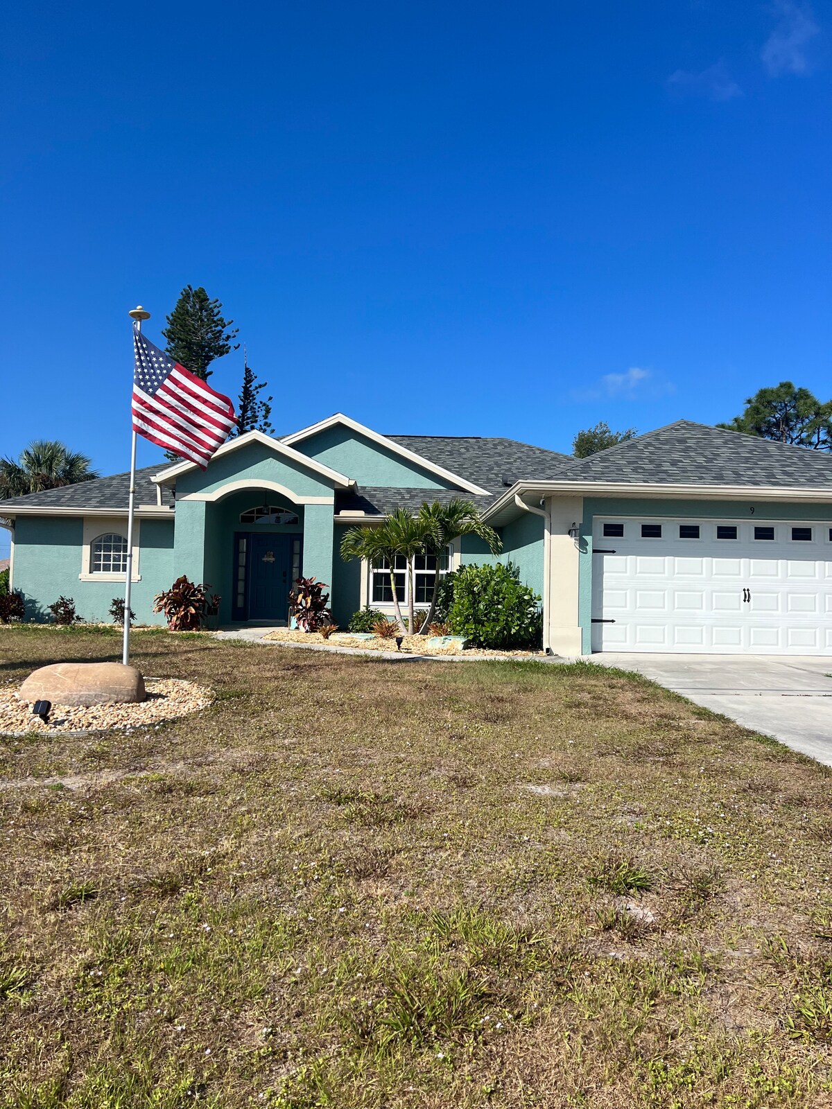 1) Hermosa casa de nueva construcción en 2 acres de 1800 pies cuadrados con 3 dormitorios y 2 baños con capacidad para 8 personas. 2) Tiene una gran piscina sobre el suelo de 18' x 33' y un gran estanque de peces y bar/barbacoa al aire libre y estacionamiento de paisaje tropical para 4 coches. 3) A 15 minutos en coche del centro de Punta Gorda con muchos restaurantes, pequeñas tiendas y bares con música en vivo y mucho más, a 7 minutos en coche de la tienda más cercana Winn-Dixie. 4) A 10 minutos en coche del aeropuerto de Punta Gorda. Situada en un barrio tranquilo con grandes robles en una calle sin salida.