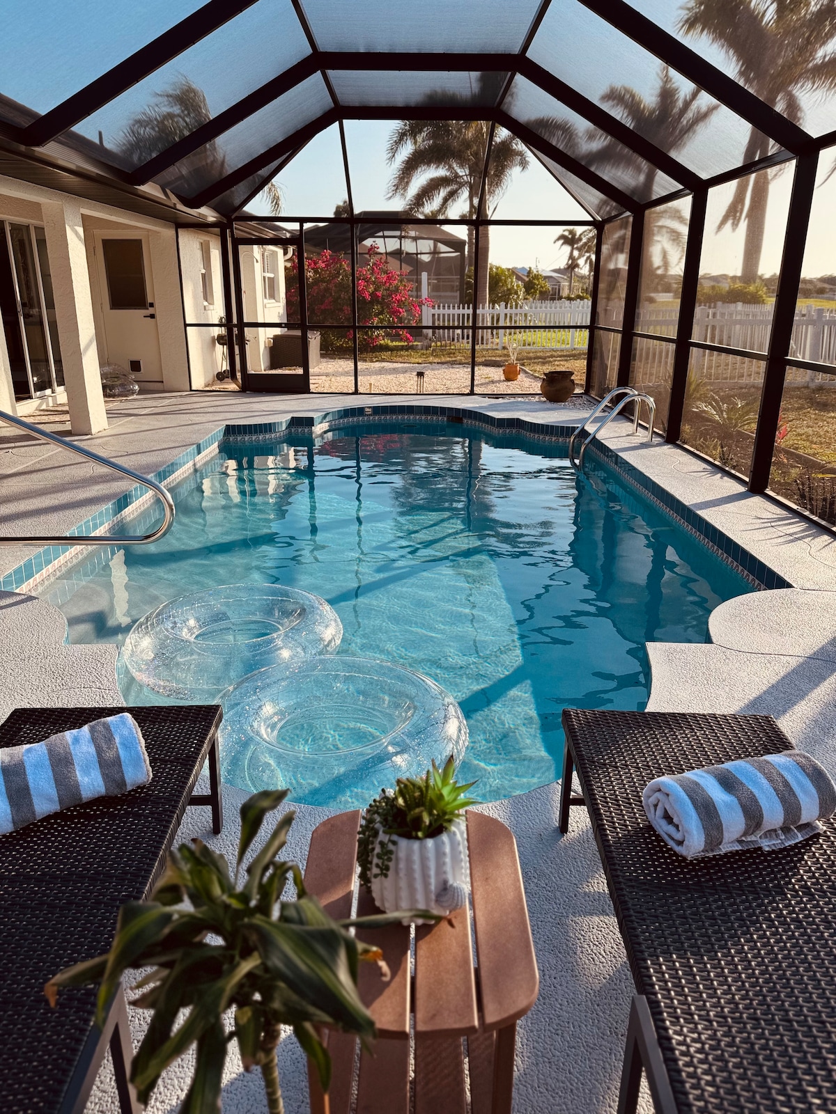 Welcome to The Coastal Coconut 🥥, your private Florida retreat with a outdoor pool, pool table, and all the beach gear you need. Perfect for families, groups, or couples looking to relax, explore, and create unforgettable Gulf Coast memories. Spend the day shelling at nearby beaches, challenge friends to a game of pool, then grill by the fire table as the sun sets.