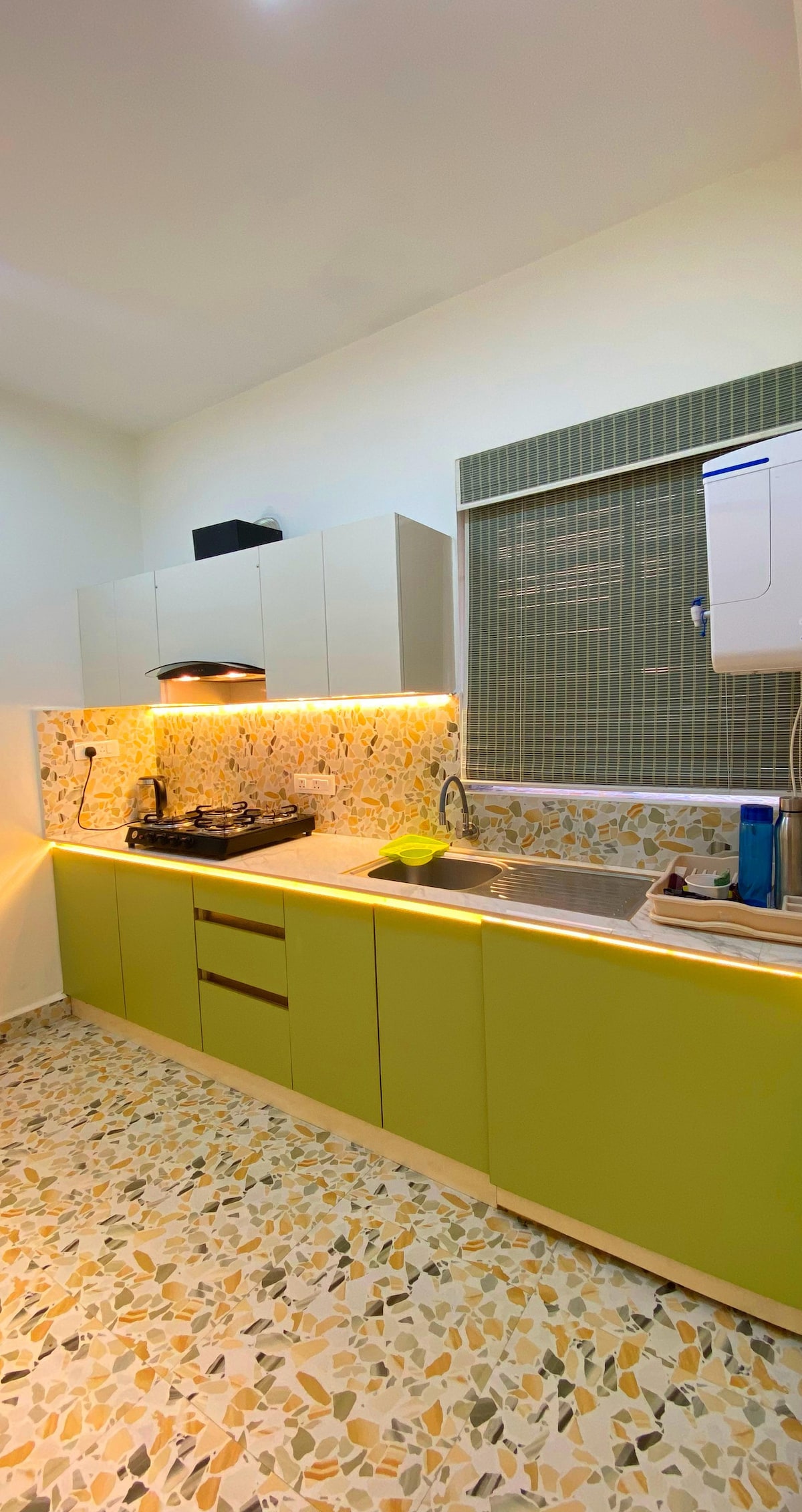 Aura es un moderno 1BHK a estrenar ubicado en un edificio tranquilo y seguro en Akshayanagar Circle. El alojamiento incluye una acogedora sala de estar con un televisor Google de 43 pulgadas, una cocina totalmente equipada, un inversor de energía de respaldo, una lavadora y un dormitorio tranquilo con una cama tamaño queen. Diseñado para dos, familias, huéspedes solos y parejas, Aura ofrece todo lo que necesitas para la comodidad y conveniencia. Supermercados, cafeterías, transporte, comida callejera y productos básicos están a pocos pasos.