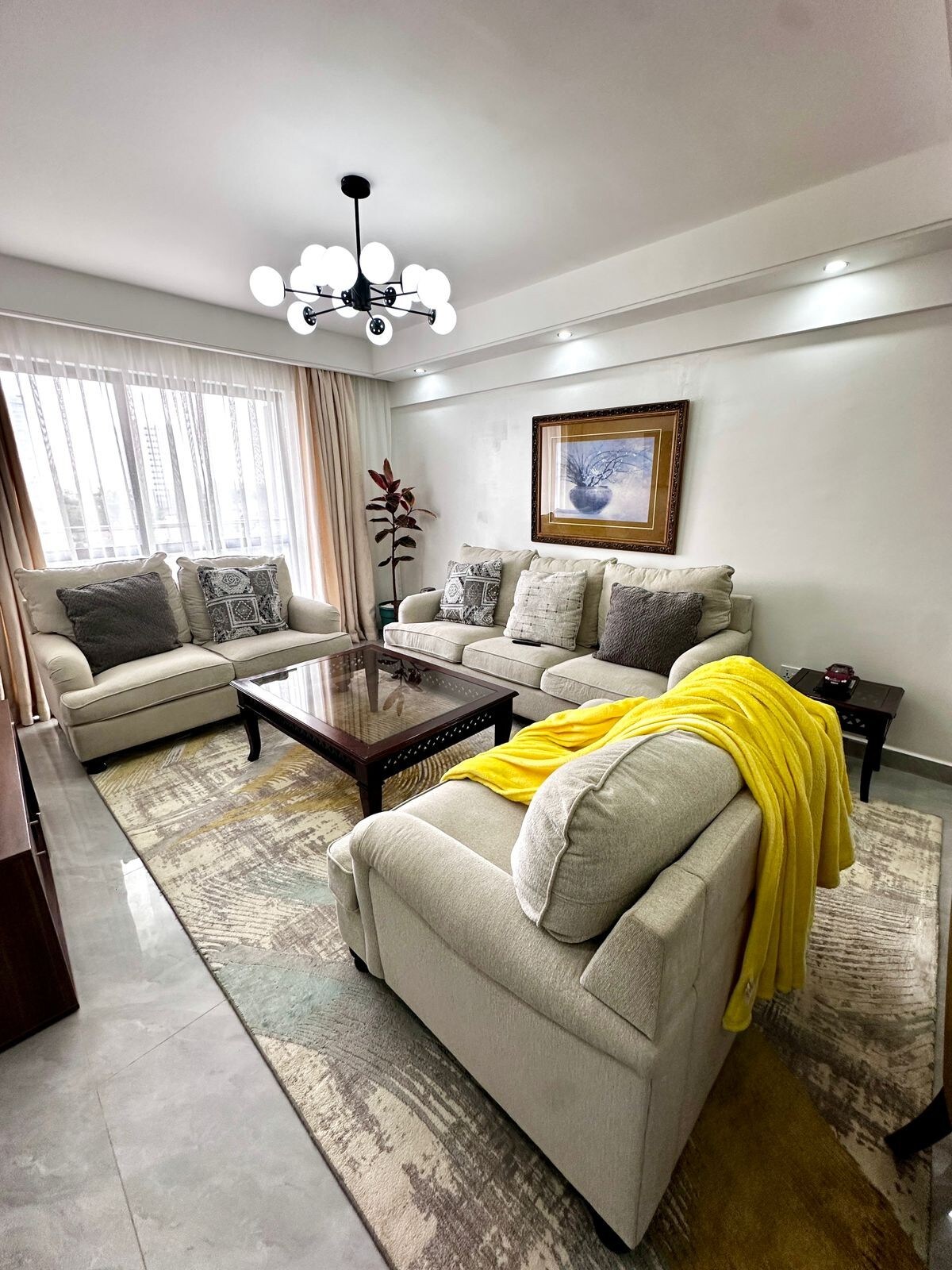 Todo este elegante apartamento es moderno, espacioso y cómodo, con un dormitorio y baño privado, lujosa cama tamaño king, comedor elocuente, dormitorio y salón Netflix-TV, balcón, cocina y lavadora. Se proporcionan todas las comodidades, incluyendo wifi rápido ilimitado e instalaciones comerciales. Situado en un suburbio tranquilo y frondoso, pero también convenientemente cerca de Westgate, centros comerciales Sarit y Lavington, restaurantes, centros de negocios, CBD y a pocos metros a pie de la vida nocturna de Westlands.