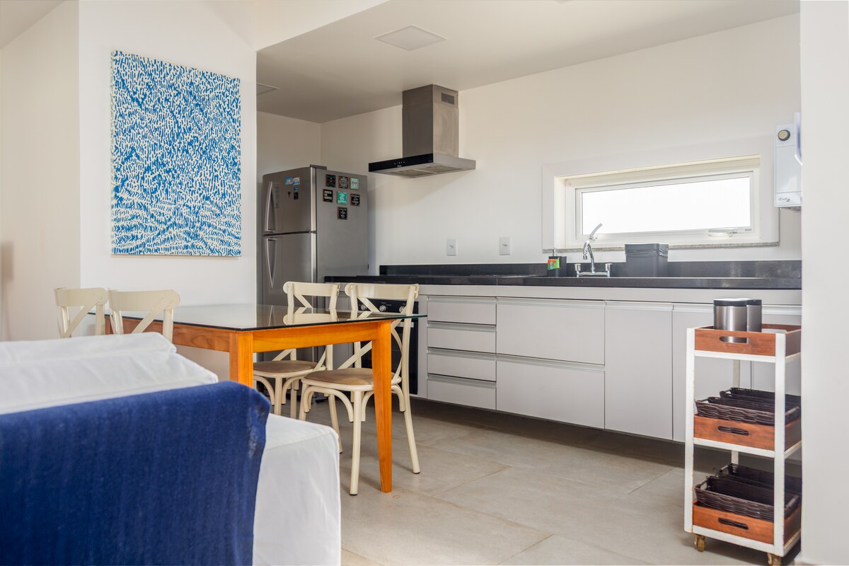 Acogedor apartamento en condominio con espacio de estacionamiento y piscina. Cuenta con wifi, aire acondicionado y ventilador de techo en el dormitorio y la sala de estar; cocina completa con varios utensilios y electrodomésticos; cama doble y 2 sofás cama dobles. Junto a la Rua das Pedras y las playas. Televisión con internet para que el huésped ingrese su contraseña. No disponible alimentos ni champú. Proporciono sábanas de cama y baño, jabón, detergente líquido y un rollo de papel higiénico. No aceptamos animales.
