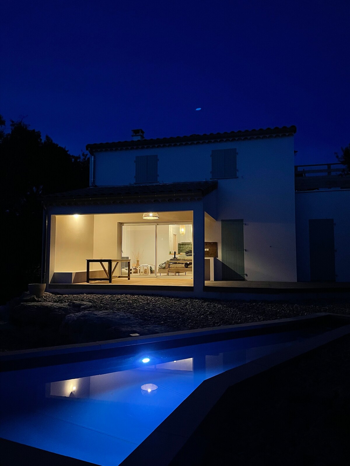 Villa moderna y espaciosa con piscina privada climatizada y segura. Tranquila, con un entorno excepcional, esta casa ofrece 2 hermosas habitaciones, un baño con ducha a ras de suelo y una cocina abierta totalmente equipada. Disfrute de una piscina privada climatizada (7 x 3,5 m) ideal para relajarse en cualquier época del año, así como de una terraza cubierta para sus momentos de convivencia. Estación de carga de vehículos eléctricos Tipo 2 disponible en el lugar.