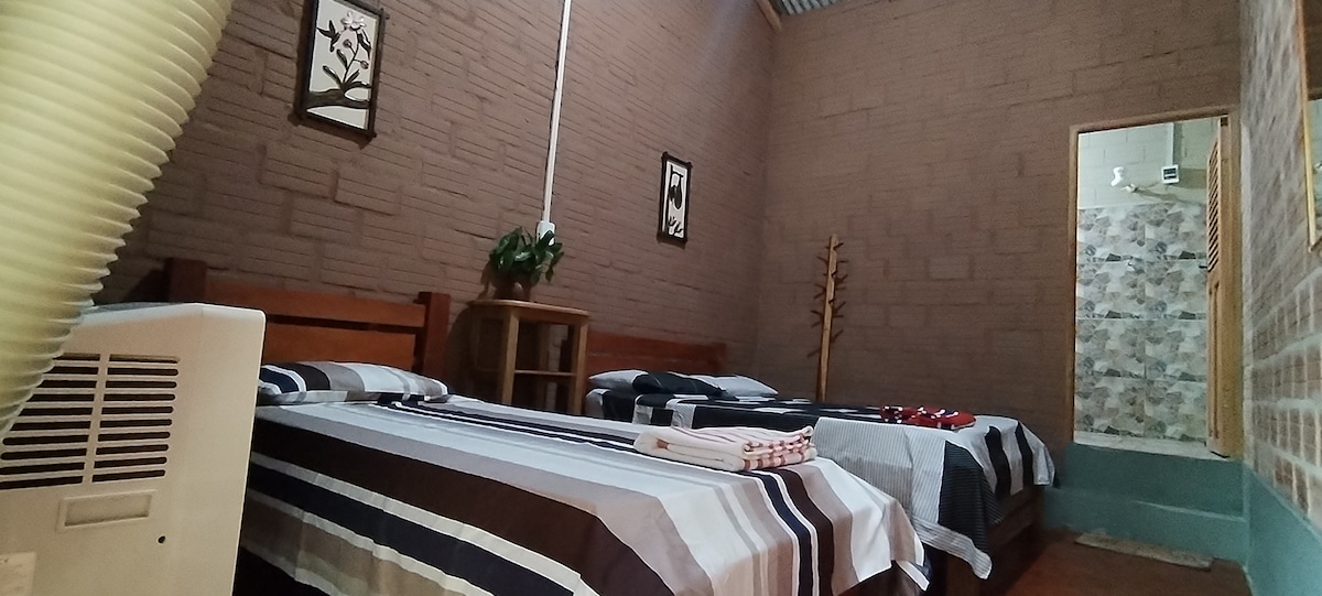 Disfruta de una habitación privada, cómoda, ideal para viajeros y parejas que buscan tranquilidad en Rurrenabaque, ubicada en zona urbana, a pocos minutos del mirador. La habitación es acogedora con buena ventilación, Wifi y baño independiente ubicado fuera de la habitación de uso exclusivo del huésped. La opción de alojamiento en carpa es adicional, solo para quienes deseen esta experiencia y debe coordinarse previamente con el anfitrión. No esta incluido en el precio base de la habitación.