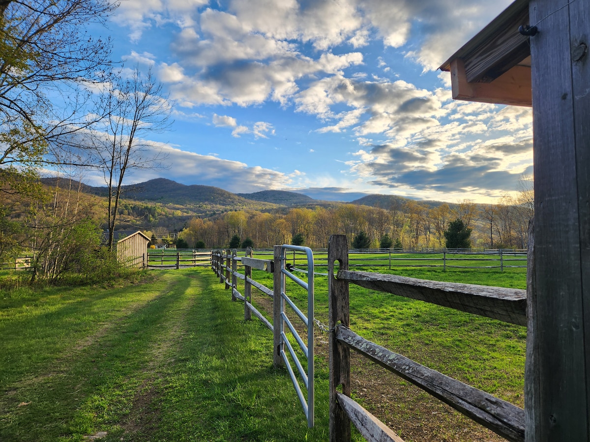 Luminoso y abierto apartamento de 3 dormitorios sobre el garaje ubicado en una propiedad equina activa. Disfruta de tu taza de café mientras miras a los caballos y las vistas a la montaña. Nuestra propiedad es una de las granjas más antiguas de Rutland y data de principios de 1800.