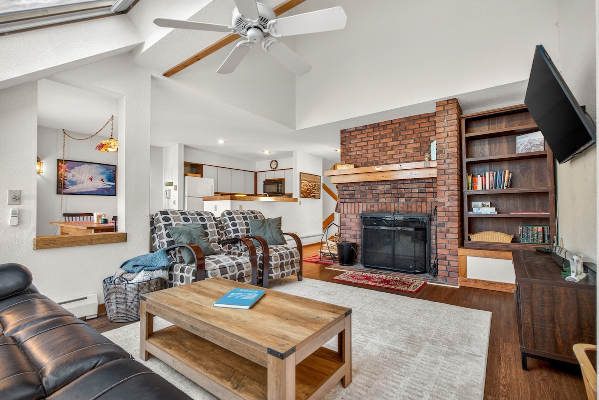 Bienvenido a tu casa adosada con acceso a pistas de esquí, donde tienes acceso directo al telesilla triple de Sunrise Village durante el invierno y acceso durante todo el año a todos los servicios de Sunrise. Con más de 2300 pies cuadrados de espacio habitable, este es un lugar ideal para que se reúnan familiares y amigos de todas las edades. Disfruta de la comodidad de una cabaña/albergue clásico de VT, además de las comodidades y servicios actuales, como la cocina renovada, tres baños completos más una ducha de vapor, chimenea de leña y wifi de fibra óptica.