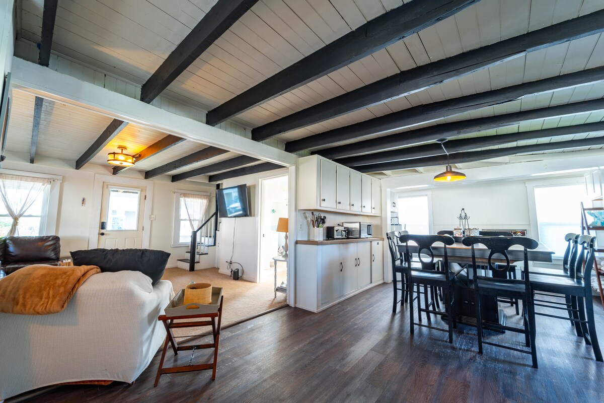 ¡Bienvenido a tu lugar de vacaciones relajantes a pocos pasos de la playa! Esta casa de campo clásica, ubicada en una calle sin salida a un minuto a pie de la casa de baños norte y de las atracciones, tiene todo lo necesario para disfrutar de la zona. Con cuatro dormitorios y un gran porche para disfrutar del clima, un patio para asar a la parrilla y un amplio aparcamiento, es el lugar perfecto para una familia o un grupo de amigos. El interior es impresionante, con vigas a la vista, sala de estar de concepto abierto y una gran cocina para entretenerse.