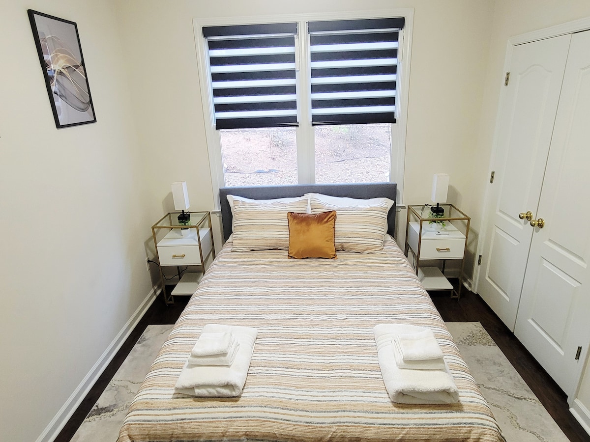 Welcome to our cozy 2-level townhouse in Stone Mountain, perfect for up to 6 guests! Recently renovated, this property boasts 2 spacious bedrooms on the top floor, each featuring a comfortable queen bed and en-suite bathroom. The lower level offers a well-equipped kitchen, living room, dining table, laundry room, and a convenient half bathroom. With 2 bedrooms and 2.5 bathrooms, this townhouse provides ample space for relaxation and comfort. Enjoy our beautifully appointed home away from home!