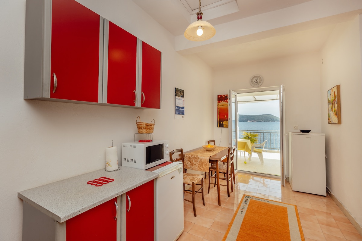 Departamento con vistas al mar, dos dormitorios con piscina, ubicación perfecta, a 50 metros de la playa, a 300 metros del casco antiguo de Herceg Novi, a unos 10 minutos a pie, cerca del monasterio de Savina, a 200 metros del complejo de lujo y del puerto deportivo Lazure. El apartamento cuenta con todo lo necesario para que tu estancia sea genial. Estacionamiento gratuito.