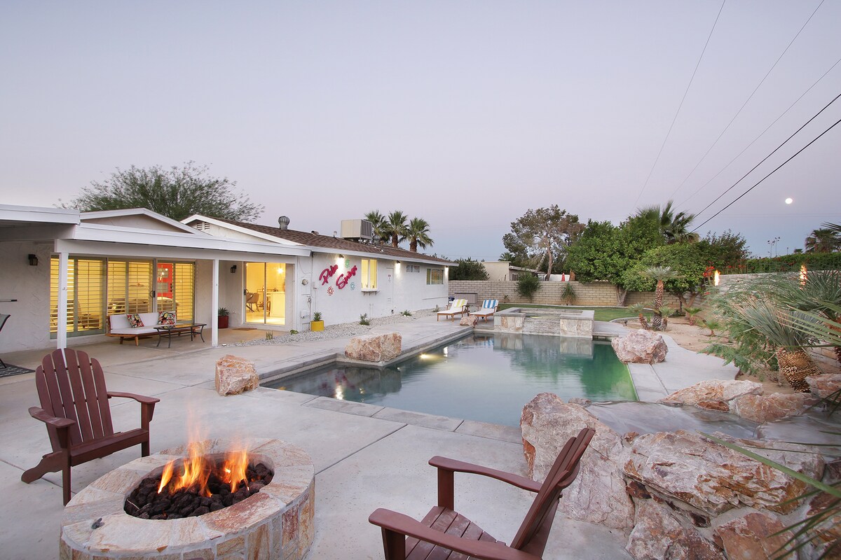 ¡Escápate a una casa moderna de mediados de siglo de Krisel Alexander con un patio trasero de estilo resort! Esta joya histórica cuenta con una piscina privada y un spa, perfecto para relajarse después de un día en Joshua Tree o explorar el valle de Coachella. Sumérgete en las vistas a la montaña desde tu oasis aislado. Número de identificación de la ciudad de Palm Springs 1781 En el interior, encontrarás el encanto de mediados de siglo. Con 3 dormitorios y 2 baños, la casa tiene capacidad para 6 personas, ideal para relajarse junto a la piscina, asar a la parrilla o disfrutar de la fogata.