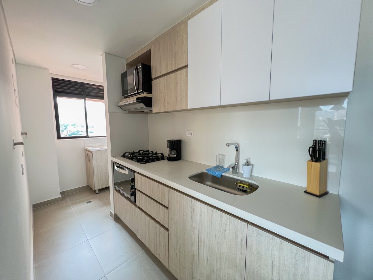 Apartamento hermoso y nuevo ubicado en el barrio El Poblado, en una de las zonas más exclusivas de Medellín. Cuenta con una habitación amplia, sala cómoda y un amplio balcón con vista a las montañas. El espacio es muy fresco y cuenta con servicio wifi de alta velocidad. la cocina está totalmente equipada y cuenta con una torre lavadora y secadora. El edificio ofrece un espectacular espacio de co-working con servicio de restaurante, amplias terrazas y gimnasio nuevo totalmente equipado.