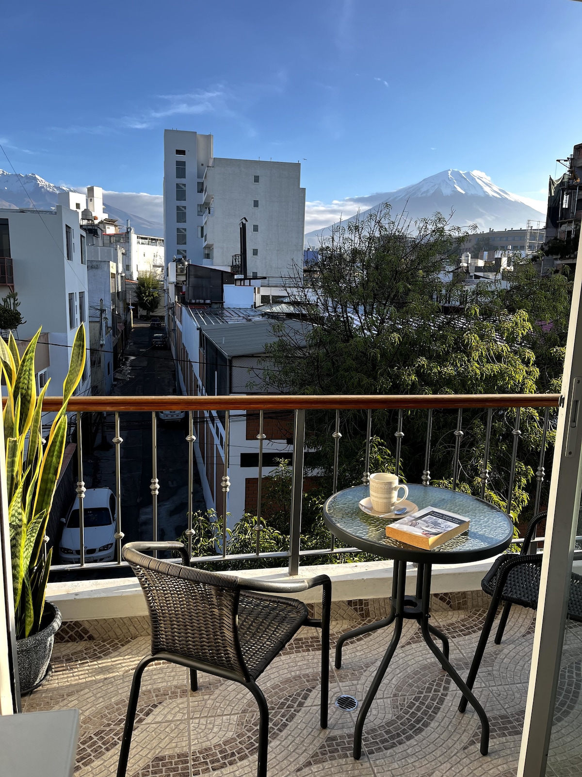 Acogedora suite con vistas increíbles en el histórico distrito de Yanahuara. Perfecta para una pareja, 3 amigos o una familia de hasta 4 personas que buscan lujo y seguridad. Disfruta de una cocina gourmet, una enorme terraza con sala de estar y comedor al aire libre, a pocos pasos de la plaza Yanahuara. Juguetes, libros y una pequeña piscina para que los más pequeños disfruten. Mapas y recomendaciones para los huéspedes. Estamos situados en una calle privada cerrada, con seguridad las 24 horas, los 7 días de la semana y una tranquilidad que es una experiencia poco común en la bulliciosa Arequipa.