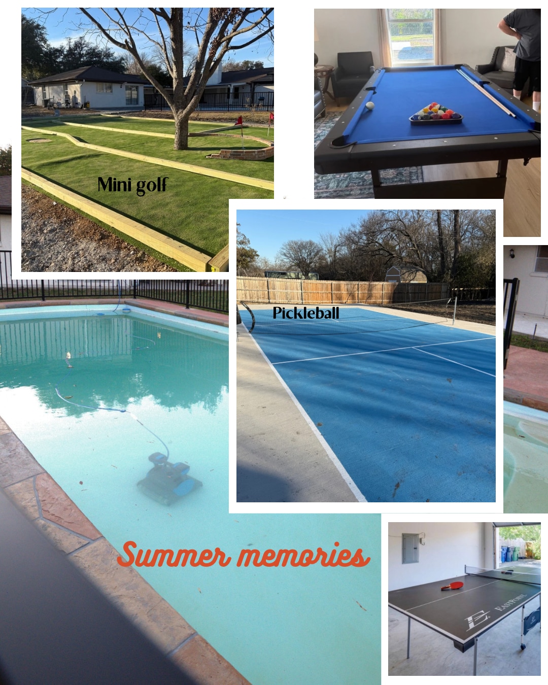 Relájate con toda la familia en este alojamiento tranquilo. Los 4 dormitorios son grandes y espaciosos. Cada uno tiene un televisor Roku. Sala de juegos con mesa de billar, televisor Roku de 65 pulgadas, tablero de dardos y asientos. Cocina y comedor bien equipados en la cocina, el comedor y el patio. La piscina está disponible, pero no climatizada. El spa no tiene calor. La piscina se limpia semanalmente el martes. Hay una red de piscina disponible para eliminar hojas y otros escombros. Los remolques, barcos, casas rodantes no se pueden estacionar en la propiedad.