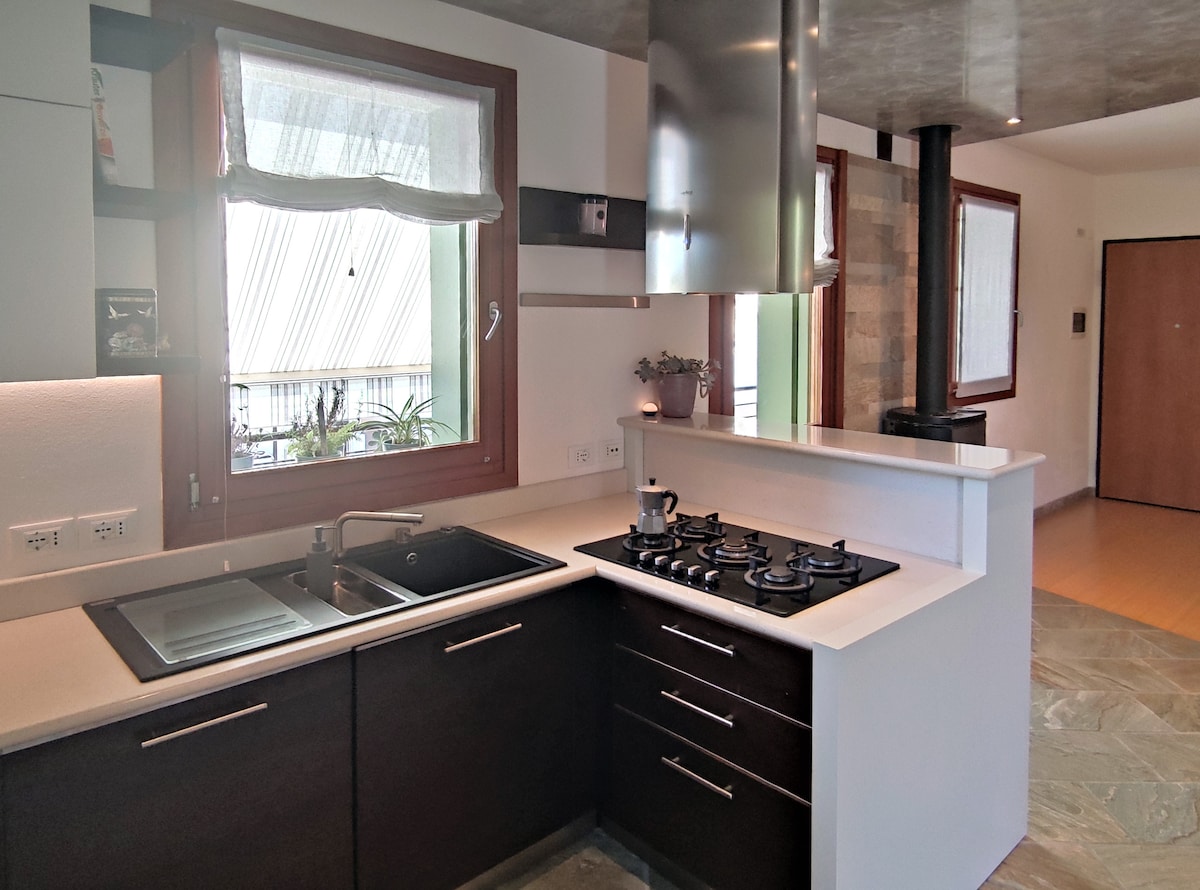 Piso moderno y luminoso, ideal para hasta 4 personas. A solo unos pasos de la estación de trenes y autobuses, el hospital y el centro de la ciudad, este lugar es perfecto para ir a la feria, Aviano y la autopista. Déjate cautivar por sus amplias ventanas y relájate con todas las comodidades, ¡incluida una SmartTV de 55" con Netflix! En la planta baja del edificio hay un bar y una farmacia. En las inmediaciones hay varios restaurantes, tiendas y cajeros automáticos.
