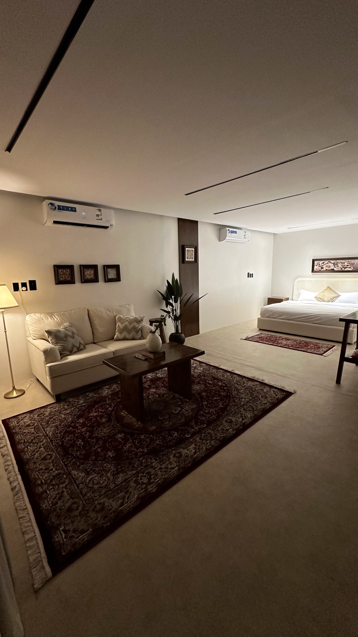 تم تصميم هذا المسكن ليتناسب مع احتياجك ويصنع رفاهيتك وراحتك بكامل التفاصيل ، يتميز بالخصوصية والأمان بدخول ذكي واحتياجات غرفة النوم لقضاء ليلة هانئة وسرير ماستر وشاشة ذكية 60 بوصة وشبكة واي فاي ويتميز بموقعه المميز وقربه من سكة القطار ومركز تسوق يبعد تقريبا 4 كيلو صمم بألوان مريحة وأثاث مودرن ليصنع راحتك ... اتمنى لك قضاء ليلة سعيدة ...