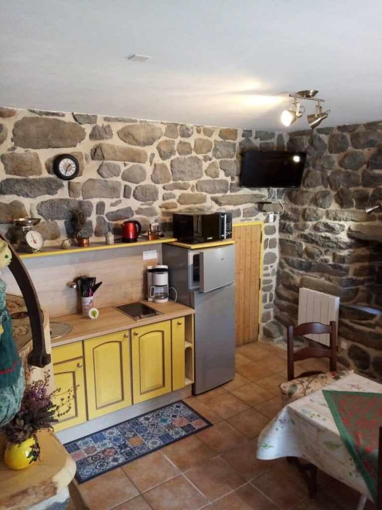 Le ofrecemos, en nuestra casa típica de la arquitectura de los Altos Planaltos de Ardèche, una estancia en el corazón de una aldea y en plena naturaleza. Ponemos a su disposición un gran apartamento independiente y atípico, de unos 100 m2 en 2 niveles, con capacidad para 6 personas, con una terraza frente al Mont Gerbier de Jonc, 3 dormitorios (camas de 2 plazas), una cocina, un comedor, una sala de estar, un baño con inodoro. Este alojamiento está adosado a nuestro alojamiento.