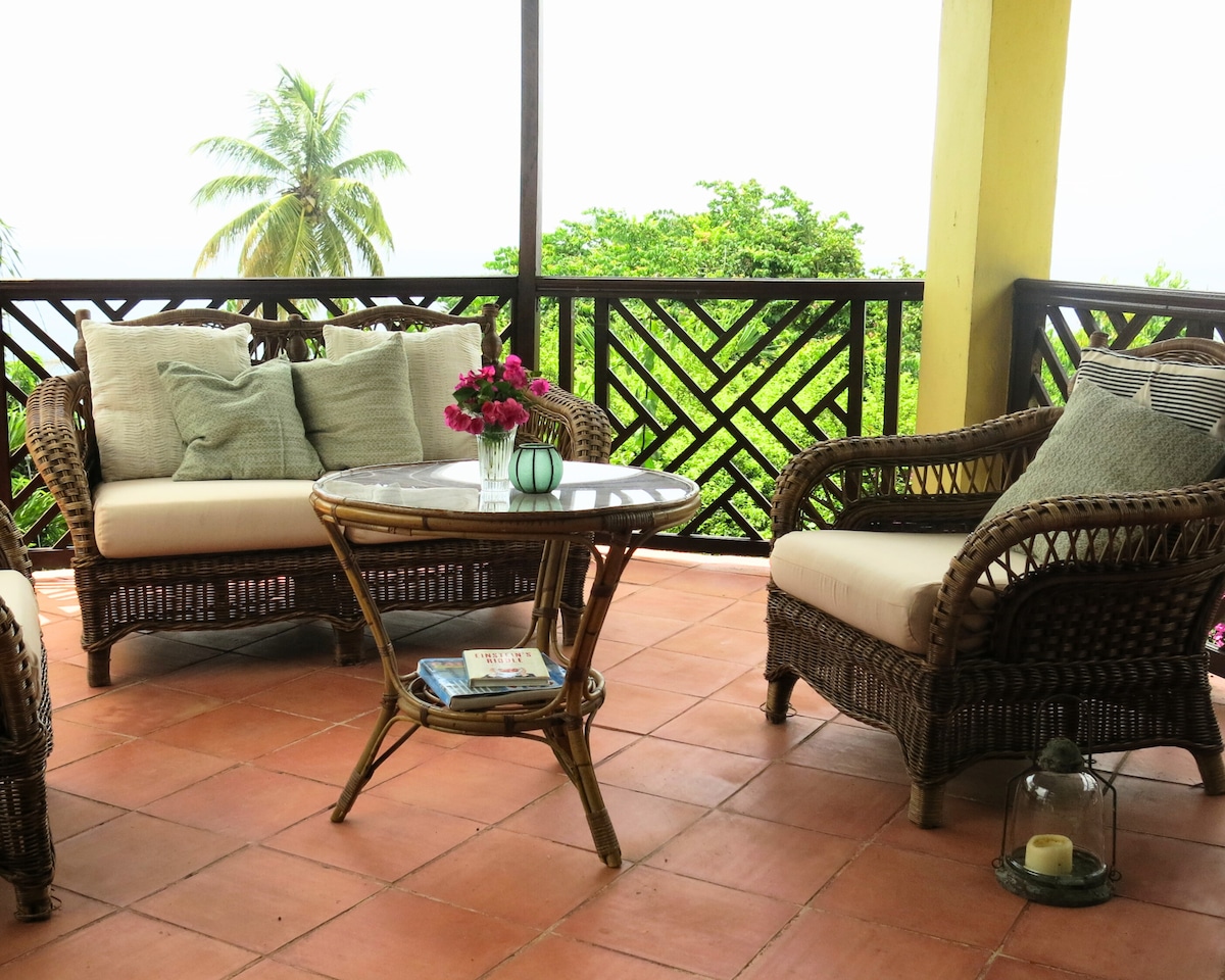 The Cottage at Villa PassiFlora represents an excellent choice for individuals or couples who don’t need the space of the Villa, and it adds the option of stays of fewer than 4 nights. The cottage is on the Villa PassiFlora property, surrounded by forest, fruit trees and tropical plants, with a view through the forest to the Atlantic Ocean. Guests have ready access to the trail leading to Pointe Baptiste.