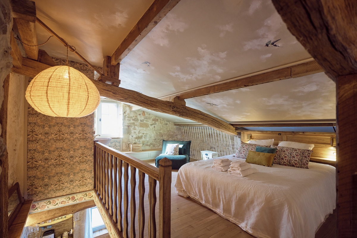 Venez vous ressourcer et vous retrouver seul ou en duo dans ce cocon de 80m2 entièrement rénové, situé au cœur du joli village ancien de Gensac en Gironde, avec une vue imprenable sur la vallée où vous pourrez admirer le soleil couchant. Vous serez conquis par son charme suranné, sa déco atypique et soignée et son confort incomparable. Un petit-déjeuner "à la française" vous est offert pour votre première nuit !