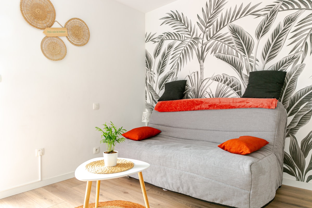 Bonito apartamento decorado con buen gusto por @OMSTYLE HOME de 38 m² + 6 m² de terraza. 3.ª planta con ascensor sin vecinos. Muy tranquilo, dormitorio y sala de estar con vistas a la terraza VISTAS AL MAR y vegetación. En el popular barrio de Gourmalon, cerca de la estación de tren y el puerto, un supermercado y otras tiendas, a 100 m de la Thalasso (tarifas de socios para mis viajeros😁), la playa de la fuente y el magnífico camino de los aduaneros . ¡Un lugar ideal para reponer energías en paz pero cerca de todo!