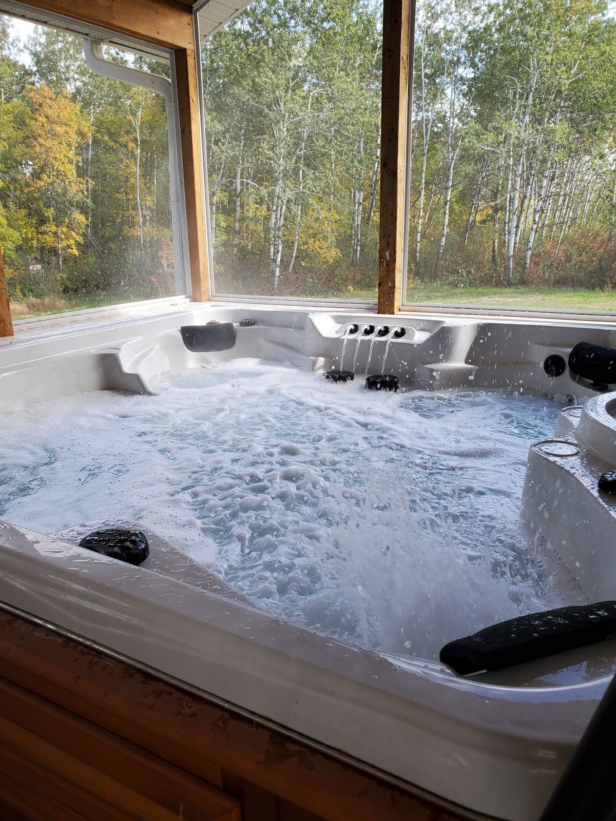 Bienvenido a un oasis de paz, escondido en el monte, lejos del negocio de la vida. Esta casa única de nueva construcción es un magnífico refugio, con 60 acres de arbustos para explorar, una bañera de hidromasaje de primera línea y una acogedora chimenea de leña, y muchos gatos amistosos para hacerte compañía. A solo unos minutos puedes disfrutar de una ronda de golf en nuestro campo local en verano, y los senderos para motos de nieve están a la vuelta de la esquina en invierno.